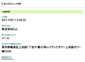 この真下海斗氏が代表を務める株式会社EyLですが、確認したところ法人登録がされているちゃんとした会社のようでした。